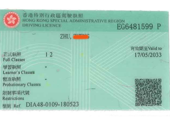 朱小姐香港驾照 |
